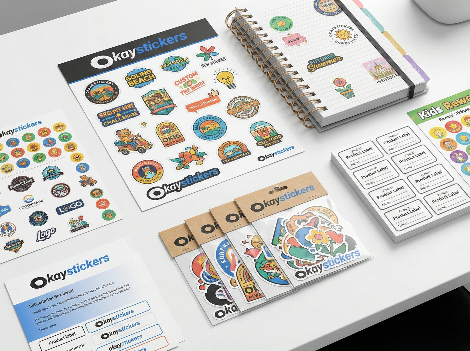 Custom sticker sheets allow you to print multiple designs on one sheet, making them perfect for branding, packaging inserts, planners, events, and retail resale. Instead of ordering individual die-cut stickers, you can organize logos, icons, labels, or illustrations into a single professionally printed sheet.